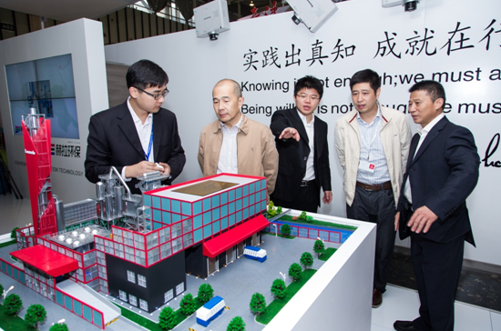 江苏省固体有害废物登记和管理中心主任傅江在赫拉环保展台指导工作